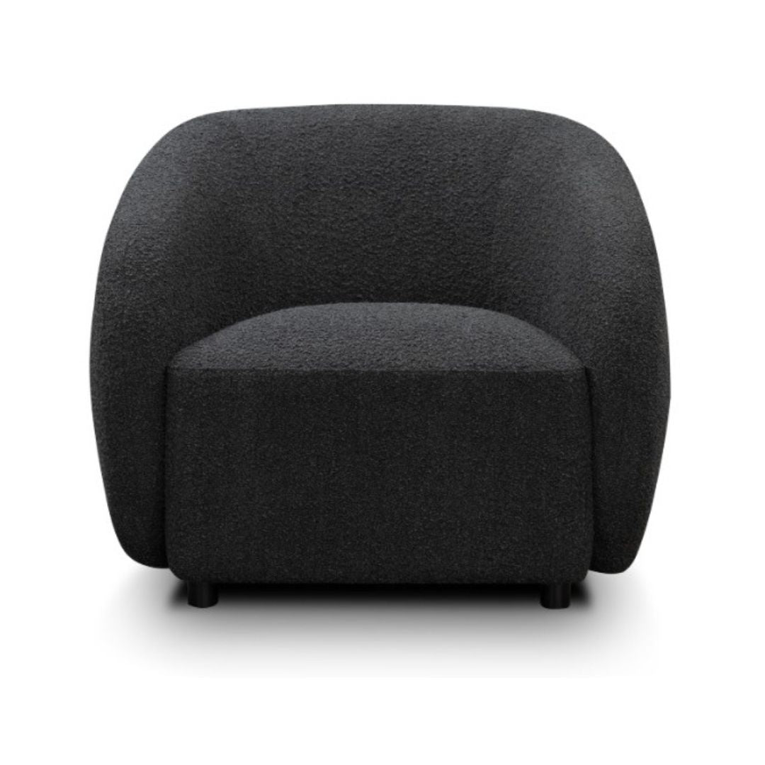 The Aspen Boucle Armchair, is a stylish yet comfortable addition to your loungeroom, available in store in Charcoal or can be ordered in Quartz.