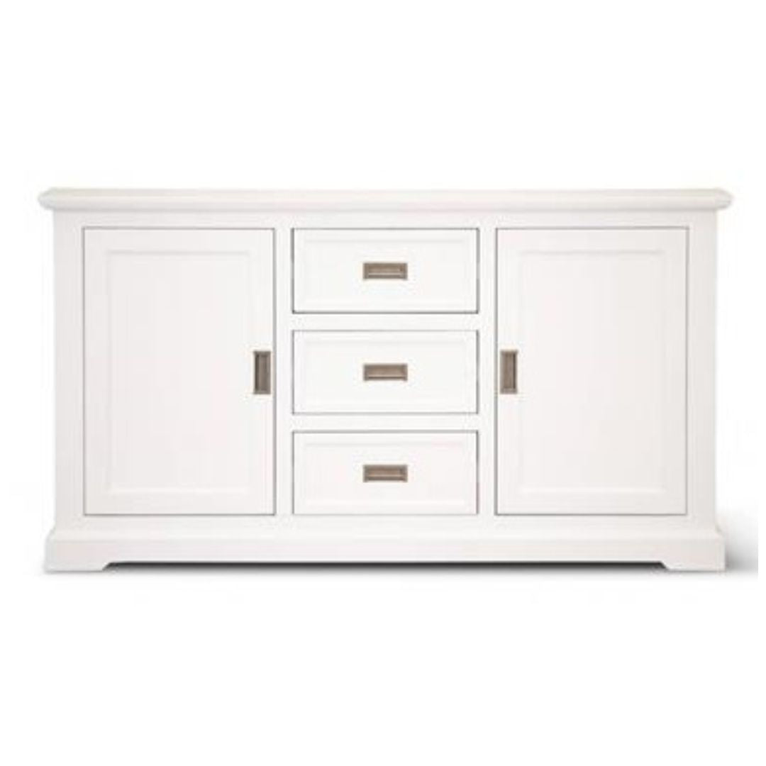 Coastal Buffet, made from Acacia with a Brushed vivid white finish, featuring 3 Drawers and 2 Cupboards.