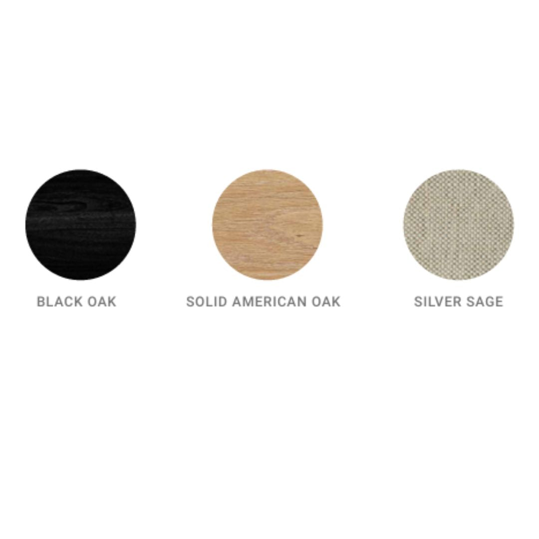 A solid oak back rest wraps around to create a comfortable dining chair. Available in natural and black oak with an upholstered seating option.